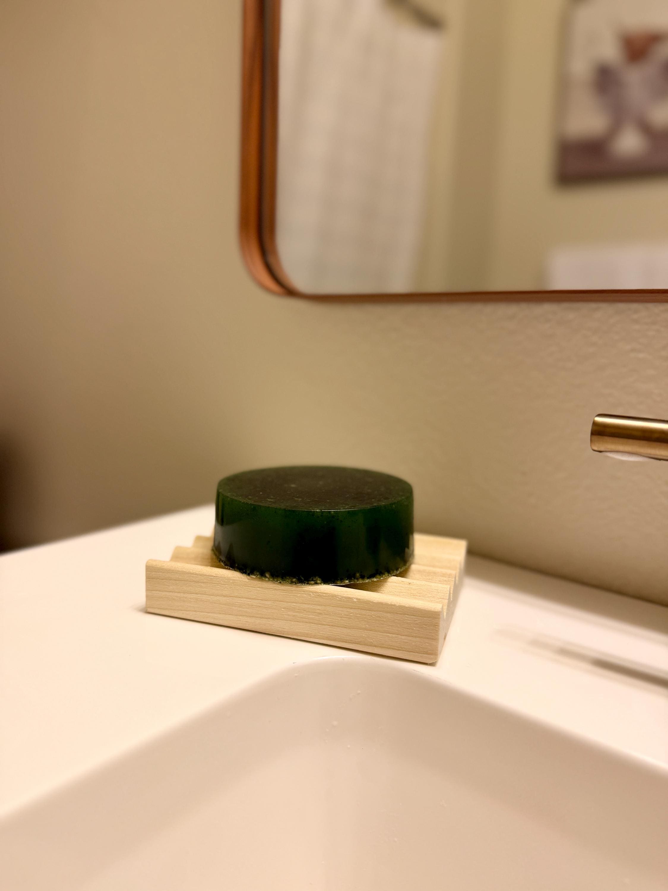 This gentle soap is made with natural clay for added slip and easy shaving. Organic spirulina powder is added for its natural and great benefits to healthy skin.